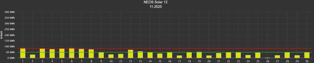 Das Projekt „NEOS Solar 12“ 2025 auf dem Dach des Kinderhauses der Lebenshilfe Dresden realisiert. Dank der PV-Anlage können fortan rund 35.840 Kilogramm klimaschädliches Kohlendioxid jährlich vermieden werden. Drei Krippengruppen mit Integrationsplätzen, fünf Kindergartengruppen mit unterschiedlicher Gruppengröße und Integrationsplätzen, sowie eine heilpädagogische Gruppe ermöglichen in der Einrichtung ein Lernen von- und miteinander. Das Projekt unterstützt den Lebenshilfe Dresden e.V. dabei, seine Stromkosten nachhaltig zu senken und stabil zu halten. Auf Grund des hohen Strombedarfs im Haus mit rund 83.000 kWh pro Jahr entstand die Idee zur Errichtung der PV-Anlage. Das reichlich 440 m² große Flachdach mit Kiesschüttung und nur geringer Verschattung durch Bäume eignet sich sehr gut zur Erzeugung von Solarstrom.